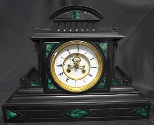 Sold Black Slate 10 Antique Signed French Clock Open Escapement Malachite Inlay Harp Gallery Antiques Furniture
